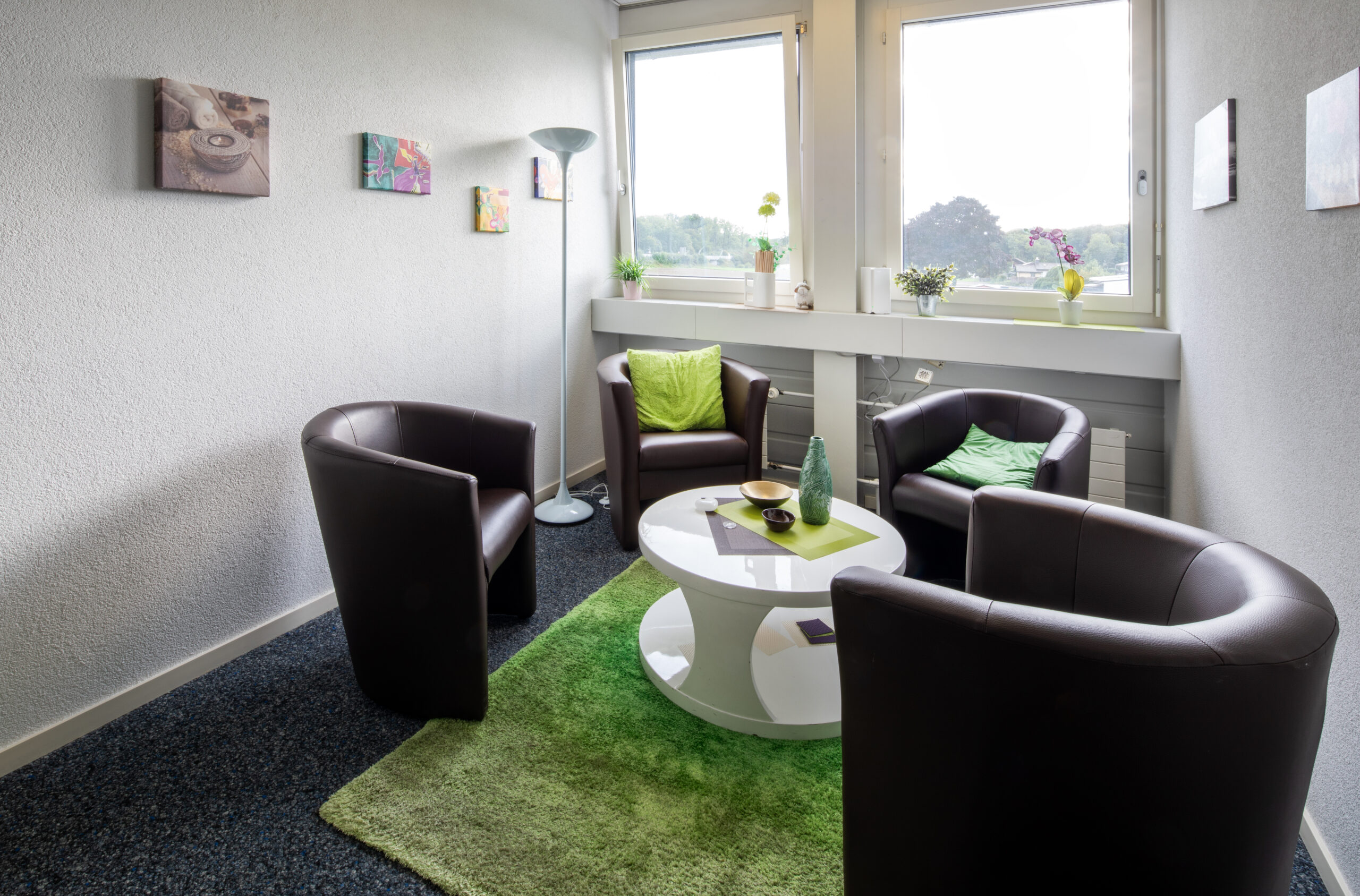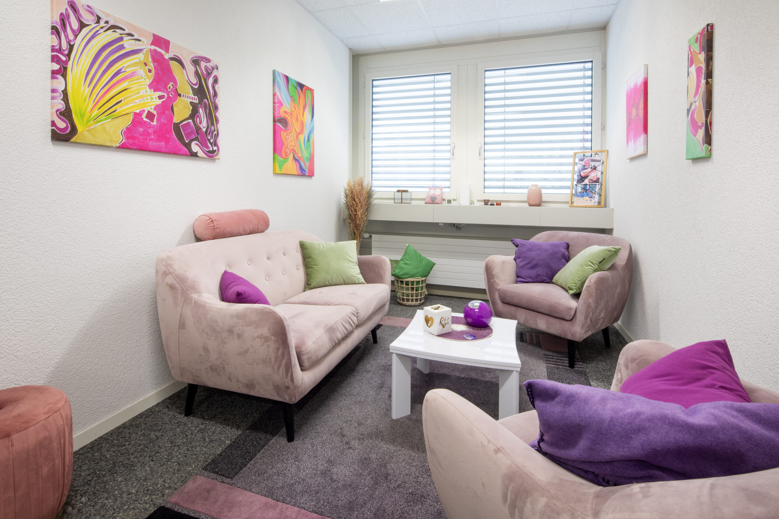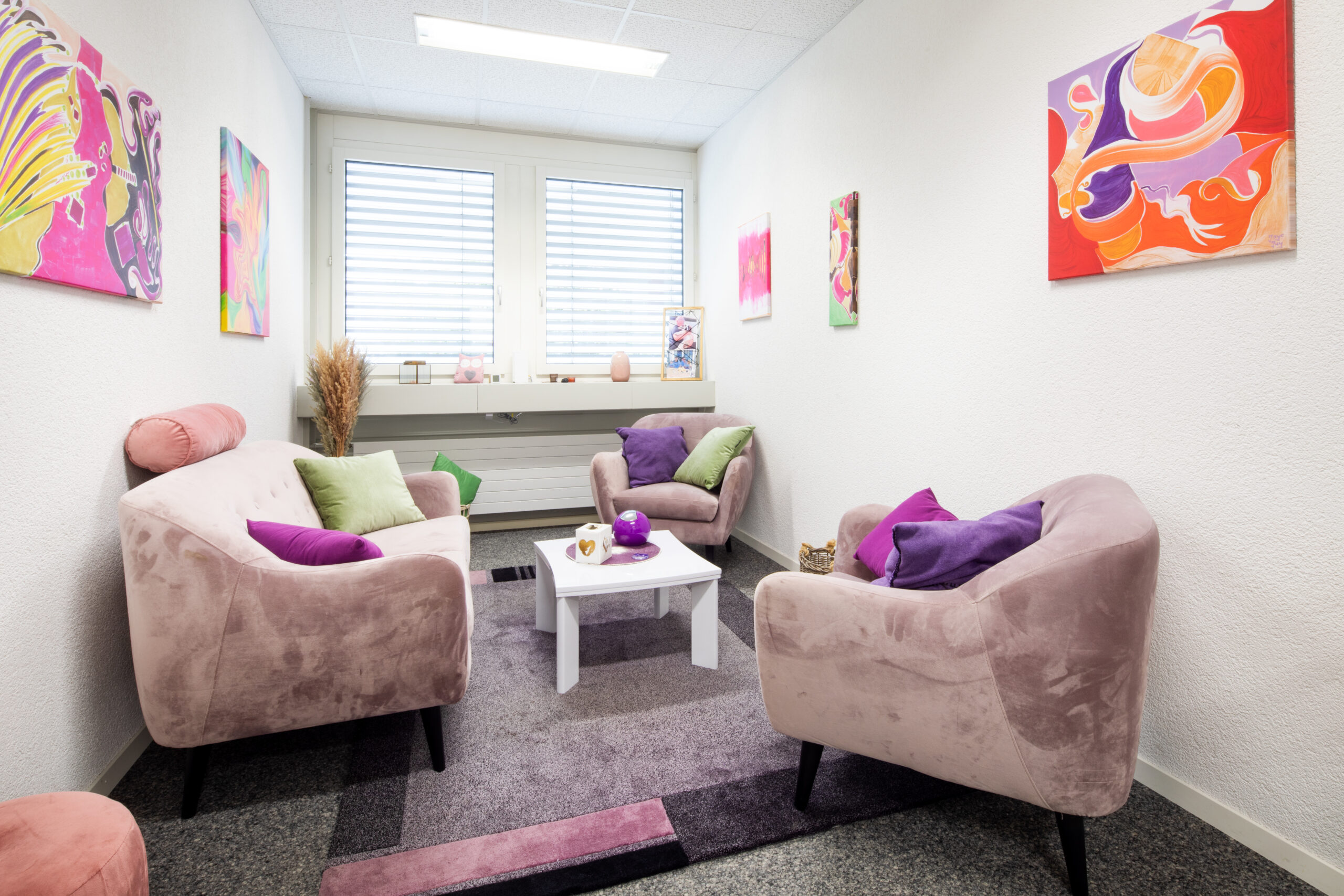 Gemütlich eingerichtetes Nebenzimmer, ideal für Einzelgespräche.