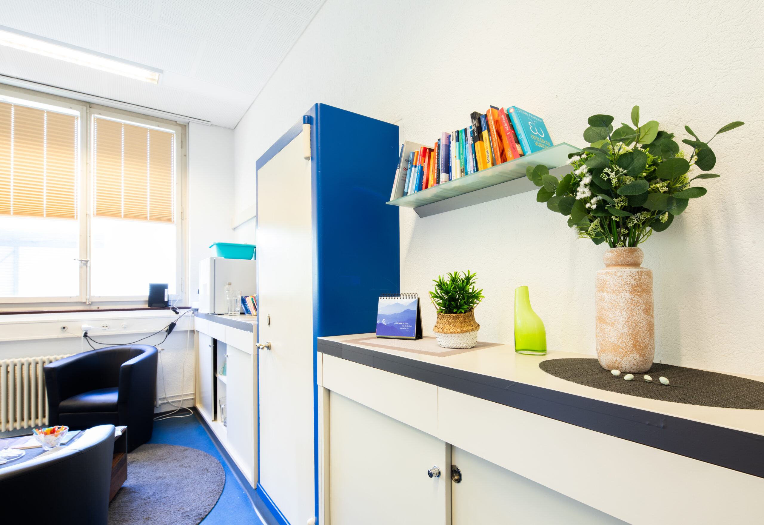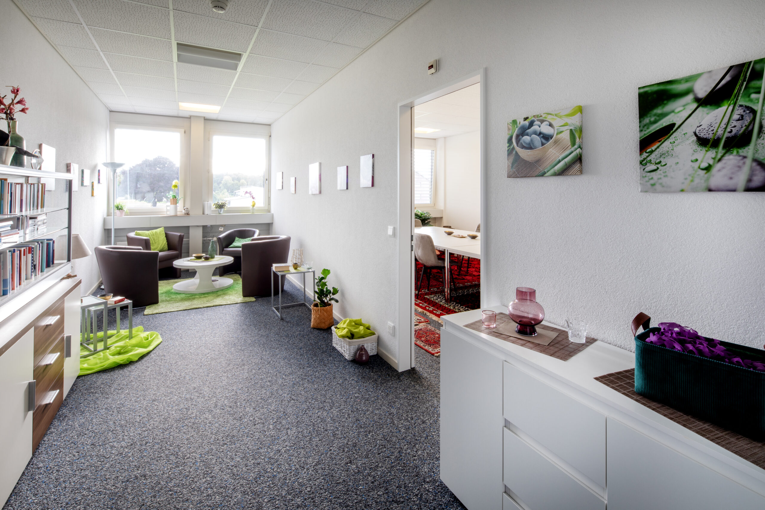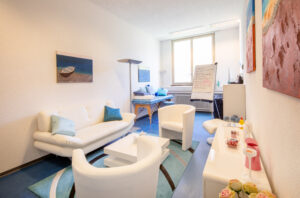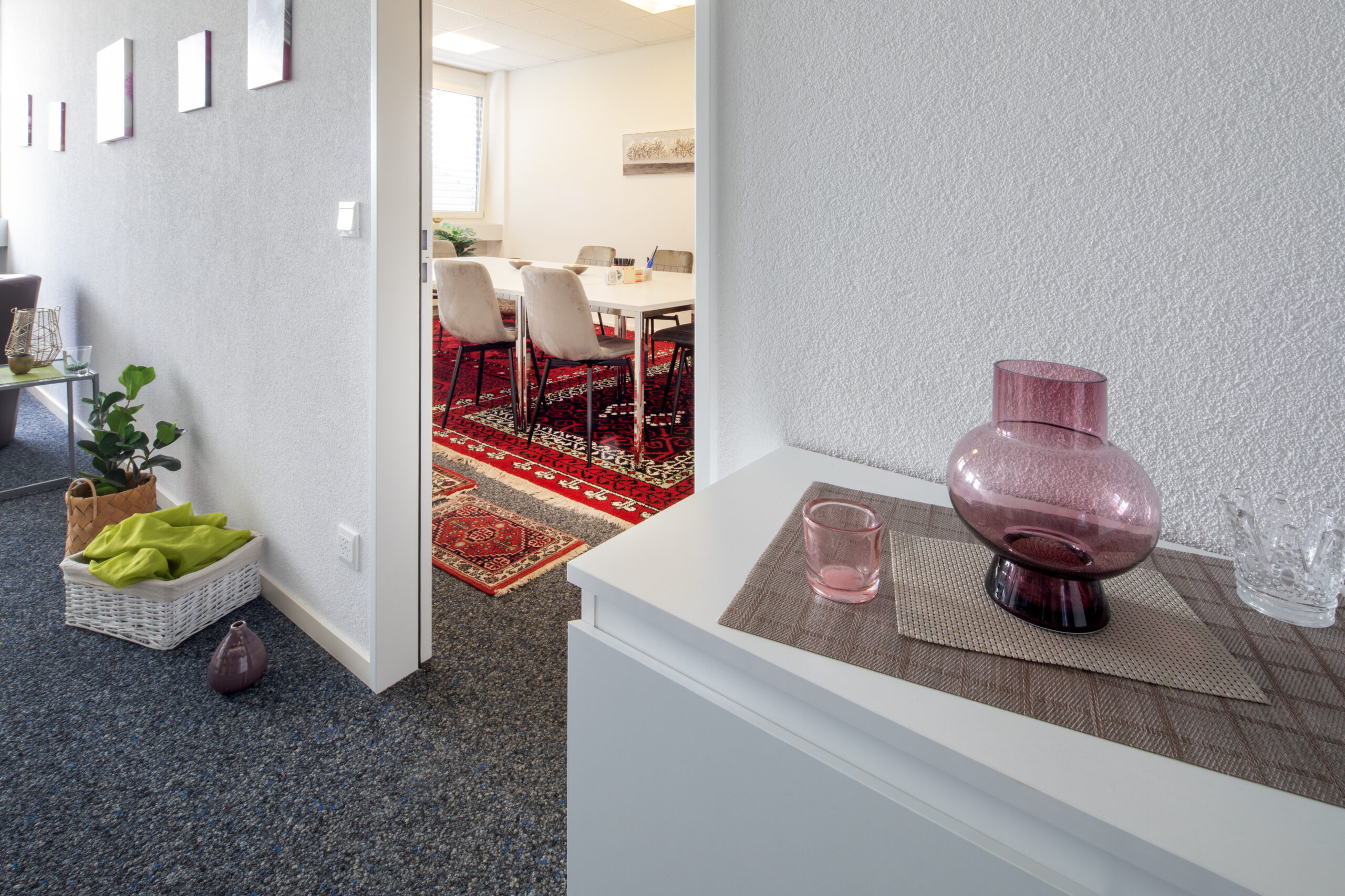 Gemütlich eingerichtetes Nebenzimmer, ideal für Einzelgespräche.