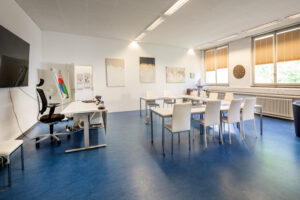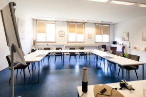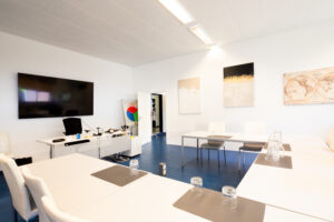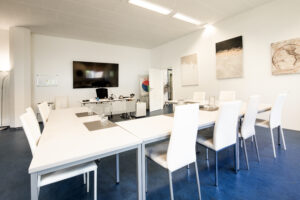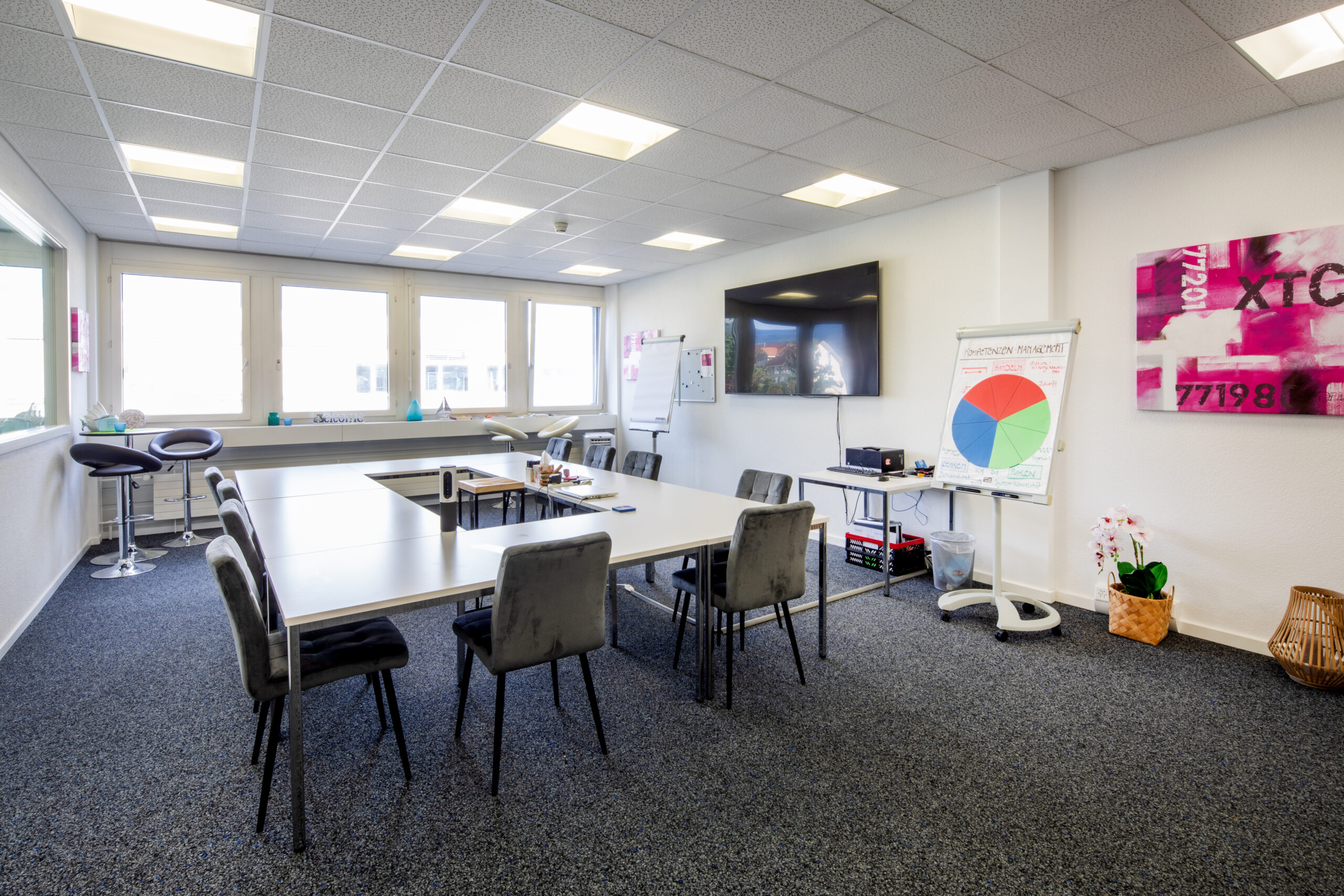 Unsere Räumlichkeiten bieten Platz für bis zu 20 Personen und sind mit einem grossen, verkabelten Bildschirm, Whiteboards, einem Drucker und schnellem WLAN ausgestattet.